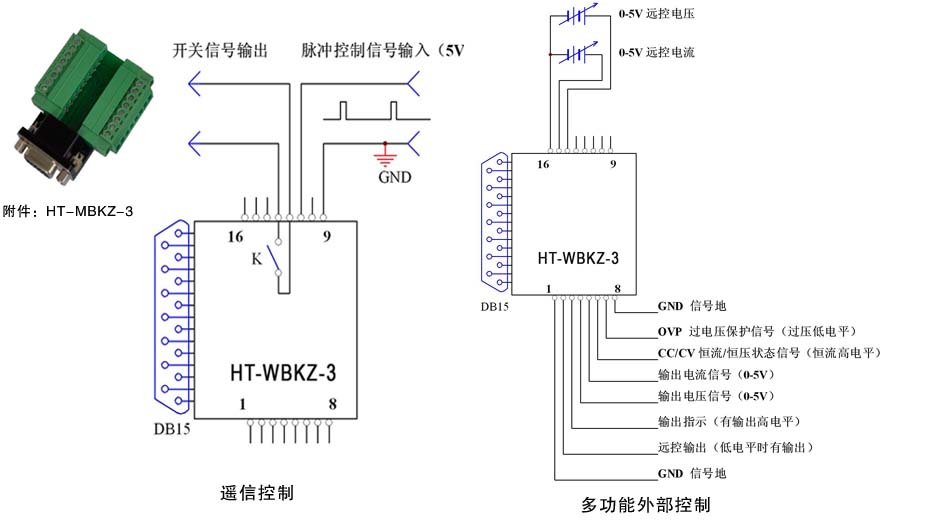 4、远端电压调节、电流调节、电压显示、电流显示功能;